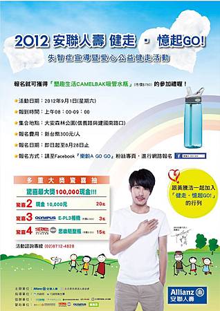 本會與安聯人壽於本年度9/1(六),早上08-09時(報到時間),假大安森林公園辦理《健走,憶起GO》活動邀您 你我手牽手,響應失智症預防在國際失智症月,一同關心家中長輩 預約沒有失智的未來!!